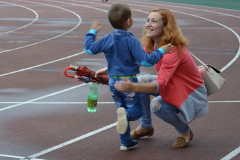 То, что у «Олимпионика» есть будущее, можно не сомневаться. Самым юным участником надо признать трехлетнего Илью Дернейко. Во время забега девушек мама не смогла увести его с линии старта. Когда он все же устремился за ними, но не догнал, раздался нешуточный плач. Пока взрослые спортсменки были на противоположной стороне стадиона, малышу разрешили пробежать дистанцию в 60 метров. На финише мальчишке засекли время и его, счастливого, поймала мама.